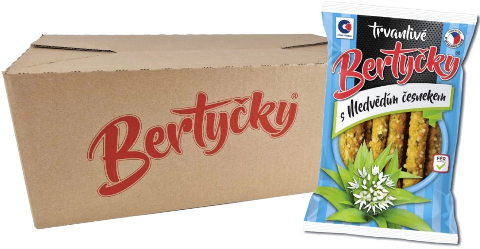 Ta se připravovala několik měsíců a byla hodnocena samotnými zákazníky v několika zkušebních anketách než se doladila k chuťové dokonalosti. Vychutnejte si tak skvělou chuť Bertyček s lístky sekané byliny. Bertyčky s medvědím česnekem neobsahují palmový olej, leštící látky, konzervanty ani přidaná „éčka“.