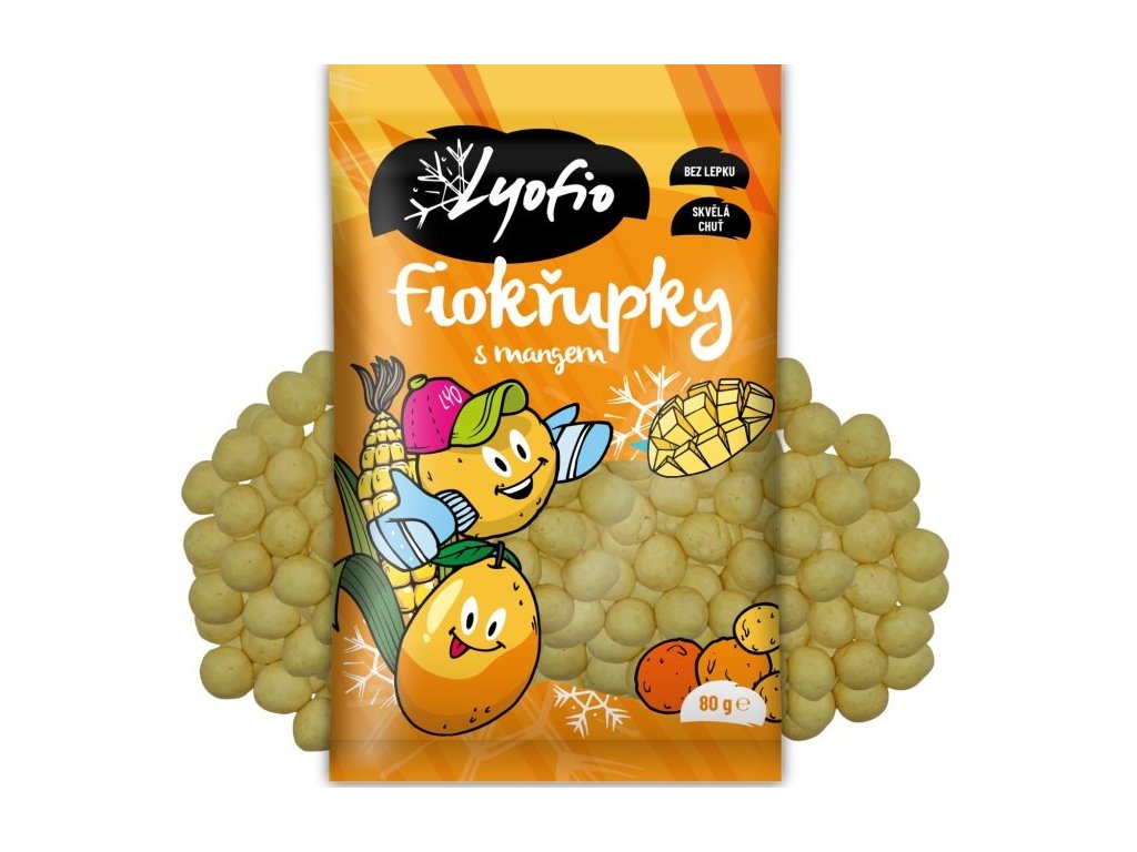 Lehoučké křupky schovávají uvnitř křehkou kukuřičnou kuličku, kolem ní krémovou jogurtovou polevu a navrch prášek z lyofilizovaného manga. Vychutnejte si zábavnou křupavost i svěží, šťavnatou chuť.